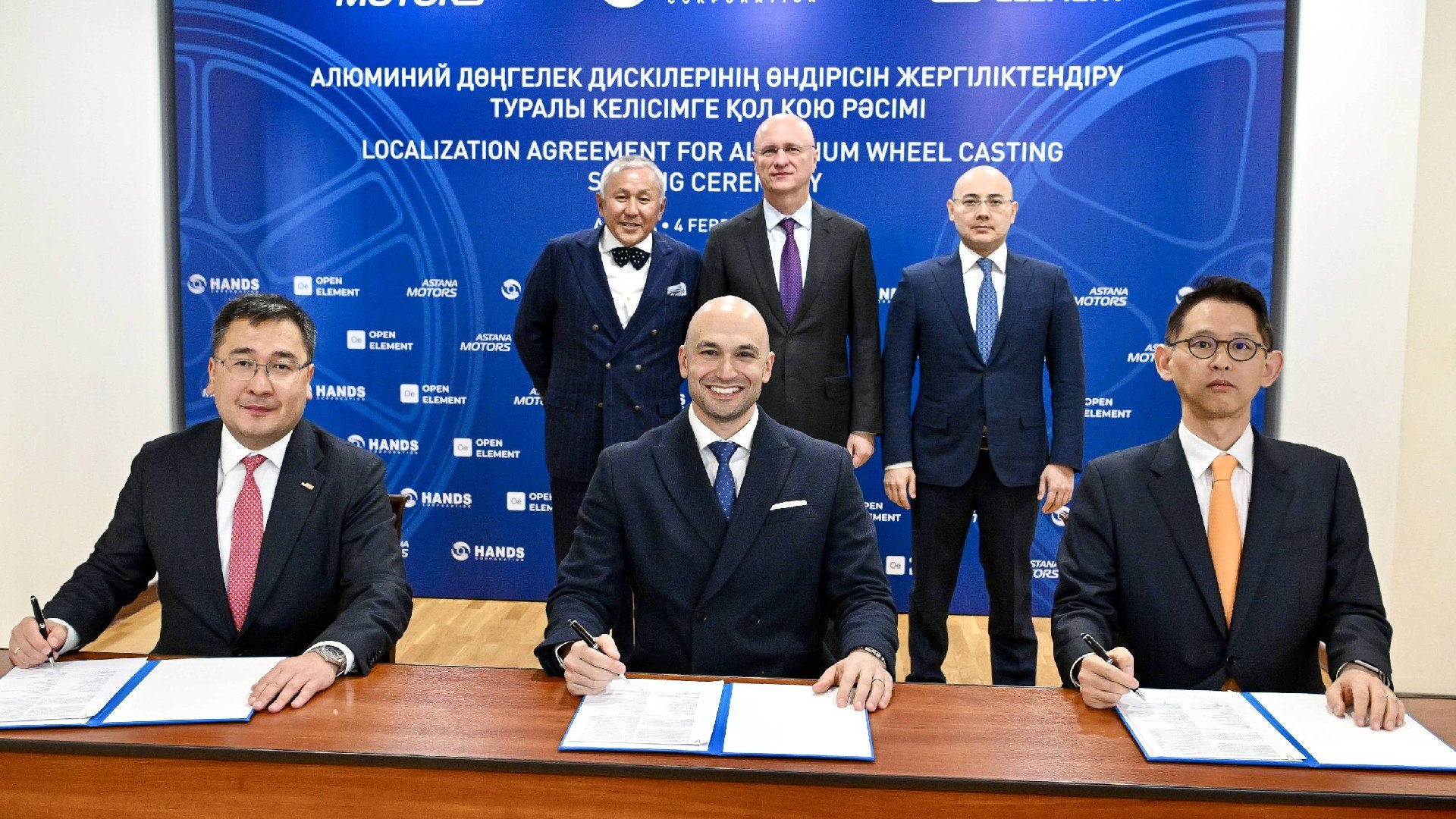 On February 4, a tripartite memorandum of understanding was signed in Astana to establish a joint venture between the domestic company Astana Motors and international partners Open Element (USA) and Hands Corporation (Republic of Korea). The agreement centers on a high-tech project for the production of automotive components – aluminum alloy wheels.