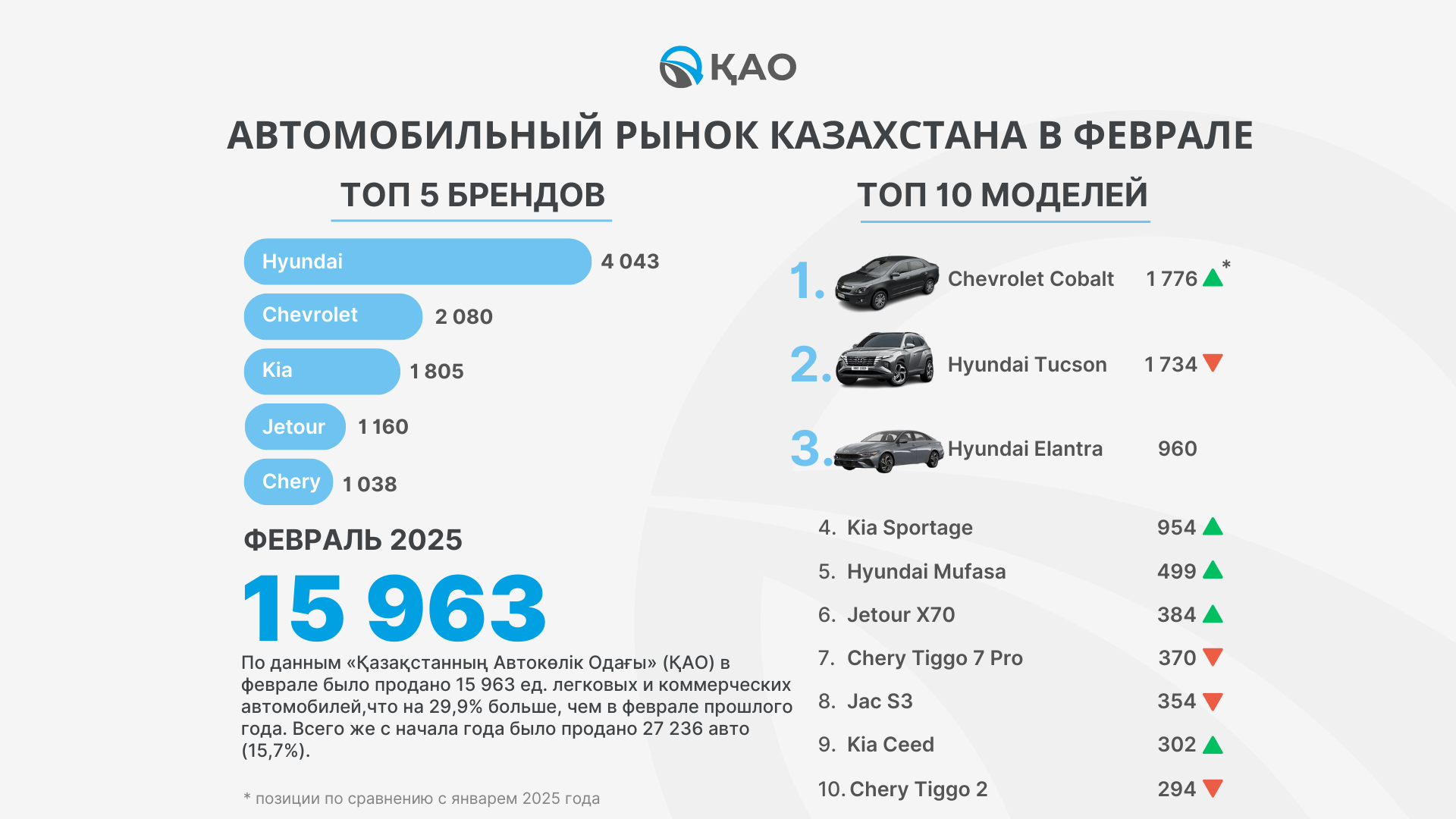 ПРОДАЖИ НОВЫХ АВТОМОБИЛЕЙ В КАЗАХСТАНЕ В ФЕВРАЛЕ ВЫРОСЛИ НА 29,9%